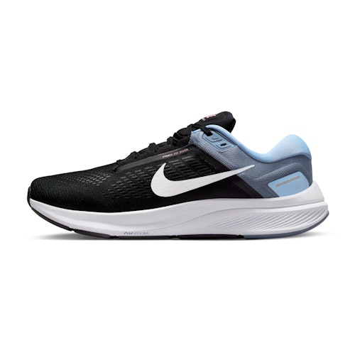 För extra stöd har en integrerad spets lagts till runt mellanfoten/valvet för en bättre och säkrare passform. Data från hundratals löpare användes för att bestämma rätt plats för hälskyddet. Hälen är också förformad, så att din fot stannar på plats. Structure 24 erbjuder extra dämpning från häl till tå jämfört med sin föregångare. Zoom Air-enheten i framfoten ger responsiv dämpning för optimal energiåterföring för att hjälpa dig framåt. Mellansulan i skum ger en fast, men ändå smidig och stabil känsla när din fot träffar marken.