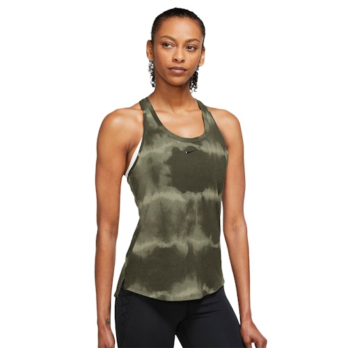 Dri-FIT One Luxe Singlet är en ärmlös löpartröja. Singletten har ett all-over tie-dye-tryck och känns mjuk och smidig. Nike Dri-FIT-tekniken ger god andningsförmåga, snabbare avdunstning och bekväm passform.