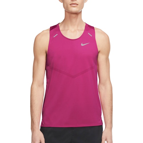 Nike Dri-FIT 365 Trail Tank Top för män är tillverkad till 75 % av återvunnet material. Denna topp har designats av löpare och för löpare. Dri-FIT-tekniken leder bort fukt från huden till utsidan av singeln, där den kan avdunsta. Tack vare detta kommer du att hålla dig fräsch under dina löpturer. Stickningen av tanken är mjuk och flexibel, vilket håller dig bekväm under dina löpturer.