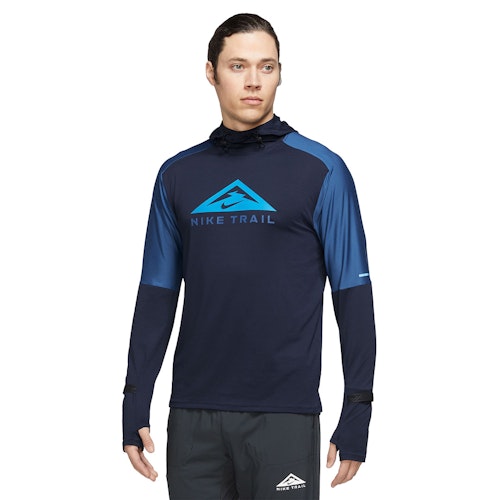 Nike Dri-FIT Trail Hoodie är gjord för löpning i kalla förhållanden. Huvtröjan är lätt, har huva och är mjuk vid beröring. Nike Dri-FIT-teknik ger bra andningsförmåga och en bekväm passform. Framsidan av denna hoodie är gjord av mjukt, vävt stickat material och baksidan är gjord för extra ventilation.