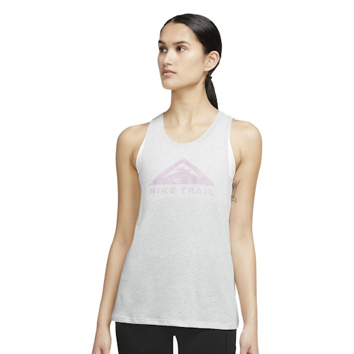 Nike Dri-FIT Trail Singlet är en ärmlös löpartopp för kvinnor. Gå ut och utforska med Nikes Trail-kollektion. Vi vet att du kan bli smutsig när du är ute och går, därför designade Nike en robust kollektion som stödjer dig när du tänjer på dina gränser. Varje plagg kan fungera som ett unikt plagg eller som en del av en lagerdräkt och är gjord för att hålla kylan ute. Nikes Dri-FIT-teknik leder bort transpiration från huden till utsidan av kläderna och håller dig därmed torr och bekväm. Singleten är gjord av stickat material från Nikes Grind-linje. Nike Grind-material är tillverkat av överblivna material som normalt skulle gå till spillo.