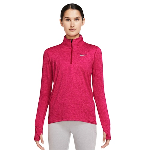 Nike Element 1/2 Zip Shirt för kvinnor är en bekväm, långärmad löpartopp. Denna topp är gjord för 50 % av återvunnet material. Toppen har förnyade muddar och ärmar. Dri-FIT-tekniken håller dig torr och bekväm. Ärmarna har en öppning för din klocka, så att du kan kontrollera din klocka utan att behöva kavla upp ärmarna. Halvdragkedjan låter dig hantera ventilationsnivåer. En slitsficka till vänster på toppen gör att du kan ta med dig mindre föremål på dina löpturer.
