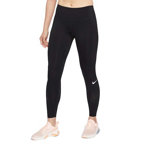 Nike Epic Lux Tights för kvinnor erbjuder komfort utan stopp. Nike Power-materialet är flexibelt och ger en tät och stödjande passform som möjliggör mycket rörelsefrihet. Perforeringar på kalvets höjd ger extra ventilation. Strumpbyxorna har slitsfickor vid höfterna och en blixtlåsficka på baksidan.