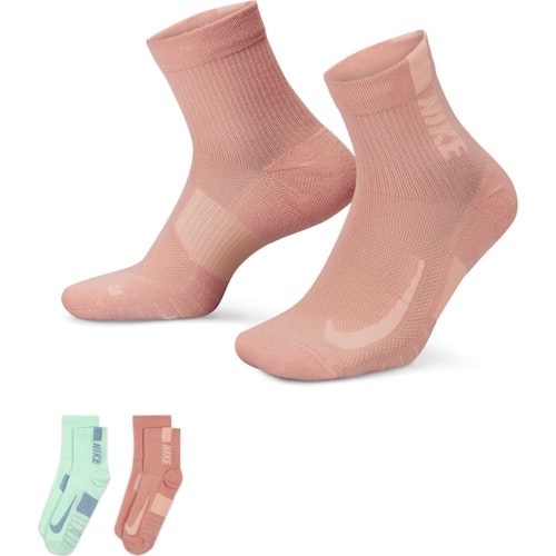 Nike Multiplier Socks 2-pack är bekväma löparstrumpor för både män och kvinnor. Dri-Fit-materialet håller dina fötter fräscha och torra när du springer.