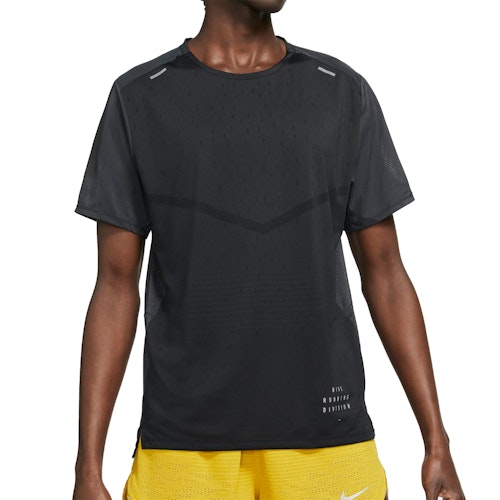 Nike Rise 365 Run Division t-shirt för män är en löpartopp med korta ärmar. Det stickade materialet känns mjukt och bekvämt och ger mycket rörelsefrihet. Toppen har några reflekterande detaljer som hjälper dig att vara säker efter mörkret. Dri-FIT-tekniken tar bort fukt effektivt och håller dig torr och bekväm. Toppen är lämplig som ett lager eller som ett mellanlager.