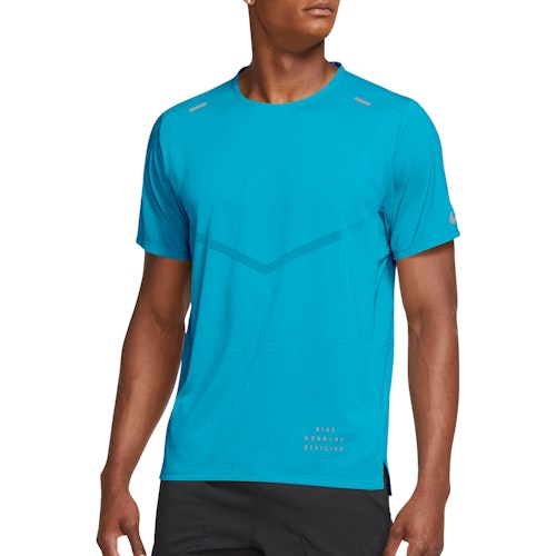 Nike Rise 365 Run Division t-shirt för män är en löpartopp med korta ärmar. Det stickade materialet känns mjukt och bekvämt och ger mycket rörelsefrihet. Toppen har några reflekterande detaljer som hjälper dig att vara säker efter mörkret. Dri-FIT-tekniken tar bort fukt effektivt och håller dig torr och bekväm. Toppen är lämplig som ett lager eller som ett mellanlager.