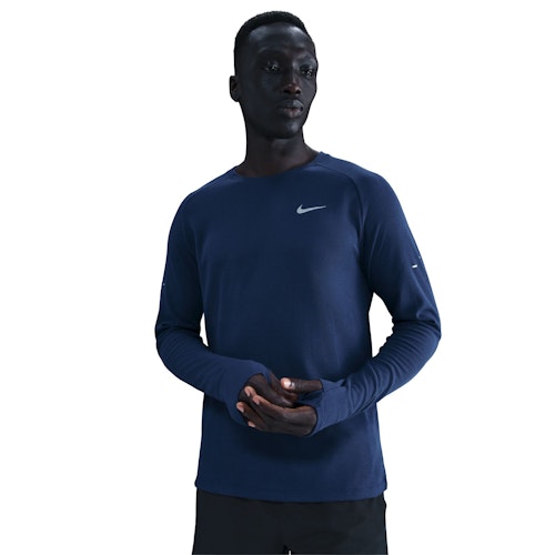 SKU: HV2705-492 Artikelgrupp: Långärmade tröjor Passform: Standard Specifikationer: Reflekterande Färg: Blå Kön: Herr Märke: Nike Material: 65% polyester 35% bomull