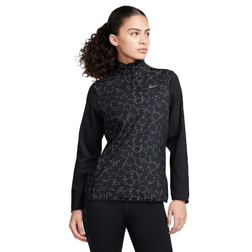 Swift Element Half Zip Shirt är en bekväm löparskjorta med långa ärmar och en halv dragkedja. Skjortan har ett reflextryck som är inspirerat av galaxen. Nike Dri-FIT-tekniken säkerställer god andningsförmåga, snabbare avdunstning och en bekväm passform.