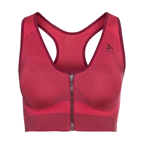 Odlo Seamless High Sports Bra för damer är en sportbehå som ger ett starkt stöd. Den höga stödnivån gör den här sport-bh:n mycket lämplig för intensiv träning. Den sömlösa designen garanterar minimal risk för irritation från skav. Materialet känns mjukt mot huden och transporterar bort fukt bra. Sorgenfria, bekväma körningar garanteras! Kuporna är utformade så att de täcker och ger stöd, medan racerback-designen ger optimal rörelsefrihet. Du kan enkelt ta på och av behån tack vare dragkedjan framtill. Oroa dig inte för att en spontan dragkedja ska gå upp. Ovanför dragkedjan finns en extra krok för att se till att sport-bh:n alltid håller sig stängd under löpningen.