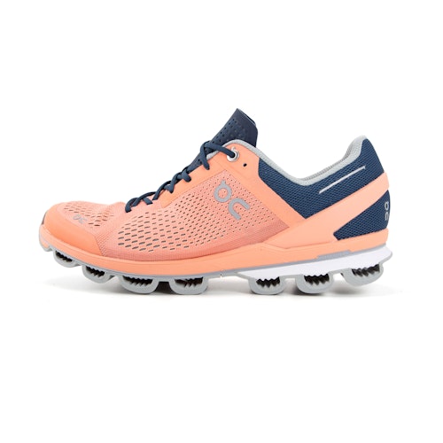 On Cloudsurfer för kvinnor är neutrala, allsidiga löparskor. Cloudsurfer har utformats för att ge dig komforten med en träningssko och hastigheten hos en racingsko. Dessa löparskor ger genomsnittlig dämpning; tillräckligt dämpning för en bekväm och snabb känsla, men inte för mycket för att du ska förlora din känsla för tunnelbanan. Tack vare detta är skorna idealiska för snabba tempo på korta och mellanlånga sträckor.