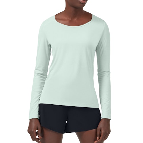On Performance Long-T för kvinnor är en löpartopp med långa ärmar. Performance Long Shirt har utformats för att anpassa sig till förändrade förhållanden. Toppen håller dig sval och torr under intensiva träningspass, samtidigt som den garanterar mycket värme under enkla joggar. Det innovativa materialet ger mycket andningsförmåga och torkar snabbt. Sömmarna har placerats strategiskt för att orsaka så lite irritation som möjligt. Det japanska stickade materialet har behandlats med en antibakteriell teknik som hjälper till att förhindra lukt.