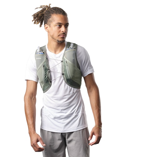Salomon Active Skin 12 Set är en funktionell löparryggsäck, designad för att ta din traillöpning till nästa nivå över långa distanser. Den här minimalistiska ryggsäcken handlar om komfort och att enkelt komma åt dina löpsaker när du är på språng. SensiFit™-konstruktionen ger en kramande, åtsittande passform utan friktion och bröstremmen låter dig förbättra passformen ännu mer utan att behöva stanna!