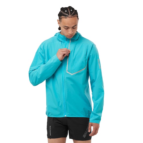 SKU: LC2175200 Artikelgrupp: Jackor Funktioner: Dragsko, Luva, Fickor Passform: Standard Specifikationer: Vattenavstötande, Vindtät Färg: Blå Kön: Herr Märke: Salomon Material: 100% polyamide