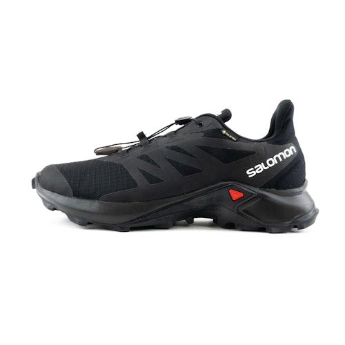 SKU: L41453500 Artikelgrupp: Trailskor Kollektioner: Salomon Supercross Färg: Svart Kön: Herr Märke: Salomon Skotyp: Neutral Dämpning: Måttlig Höjd framfot: 25,8 mm Hälhöjd: 35,8 mm Drop: 10 mm Lyhördhet: Måttlig Stöd: Måttligt Specifikationer: Vattentät, GORE-TEX, Snabbsnörning Trailtyp: Mjuk underlag Bredd: Normal