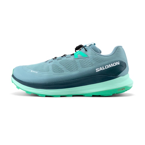 SKU: L47216800 Artikelgrupp: Trailskor Kollektioner: Salomon Ultra Glide Färg: Grön Kön: Dam Märke: Salomon Skotyp: Neutral Dämpning: Måttlig / maximal Höjd framfot: 26 mm Hälhöjd: 32 mm Drop: 6 mm Lyhördhet: Måttlig Stöd: Måttligt Specifikationer: Vattentät, GORE-TEX, Snabbsnörning Trailtyp: Teknisk trail Bredd: Normal
