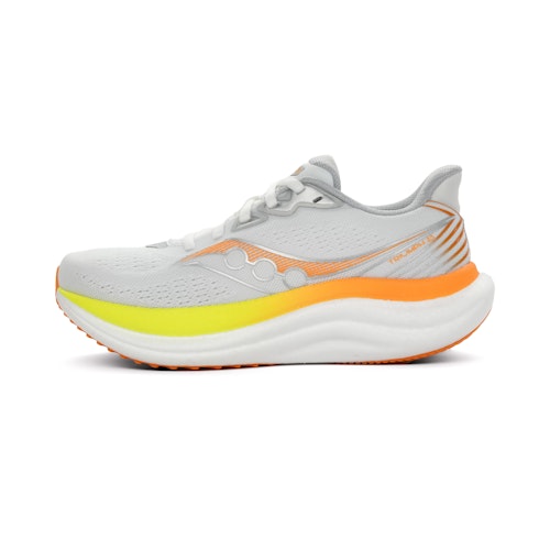SKU: S11023-343 Artikelgrupp: Allround löparskor Kollektioner: Saucony Triumph Färg: Vit Kön: Dam Märke: Saucony Skotyp: Neutral Dämpning: Max Höjd framfot: 27 mm Hälhöjd: 37 mm Drop: 10 mm Lyhördhet: Måttlig / maximal Stöd: Måttligt Vikt: 239 g Bredd: Normal