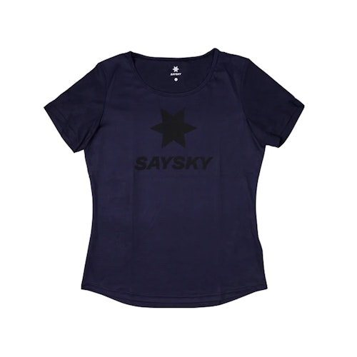 Logo Flow T-shirt är en bekväm skjorta med korta ärmar. T-shirten känns mjuk mot huden och har en svart SAYSKY-logga på framsidan och en vit vävd SAYSKY-etikett på baksidan.