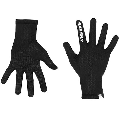 Pace Gloves är ett par lätta handskar för både män och kvinnor. Handskarna är gjorda av återvunnen polyester och har en vit SAYSKY-logga på båda handskarna. Handskarna är pekskärmsvänliga, har ett tumhål och ett halkfritt grepp.