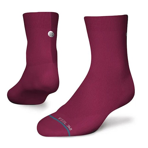 Stance Distance Quarter är en bekväm löparstrumpa för kvinnor. Feel 360 -tekniken håller fötterna fräscha och torra när de springer. De reaktiva fibrerna hjälper till att reglera temperaturen och håller fötterna torra och bekväma. Strumporna stöder fotbågen och är mycket hållbara. Det andningsbara nätmaterialet och den sömlösa designen gör dessa löparstrumpor mycket bekväma. Du kan tvätta dessa strumpor vid 40 ° C men undvik torktumlaren, de håller längre så.