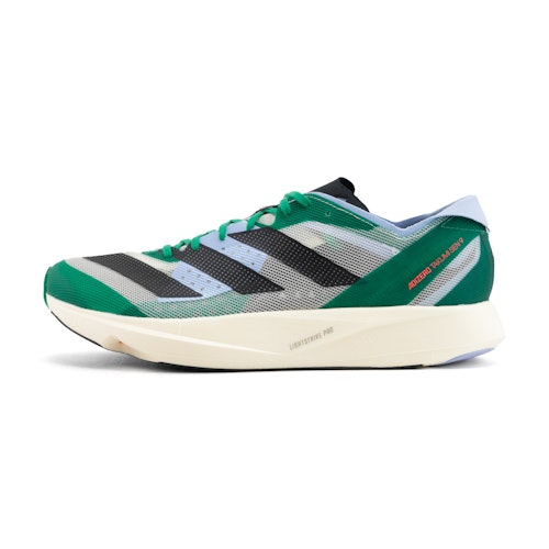 The Primegreen lightweight mesh upper is made partly from recycled material and is 8 grams lighter than its predecessor. The fit around the heel and midfoot has been improved to keep the foot even better in place during your race.
