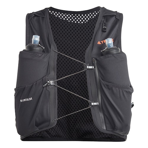The Performance Terrex Trail Vest is a multifunctional and lightweight running backpack with plenty of storage space and 2 pockets for bottles. The inside is provided with mesh, which ensures that you remain airy during your run and that you do not sweat on your back. Partly made from recycled material.