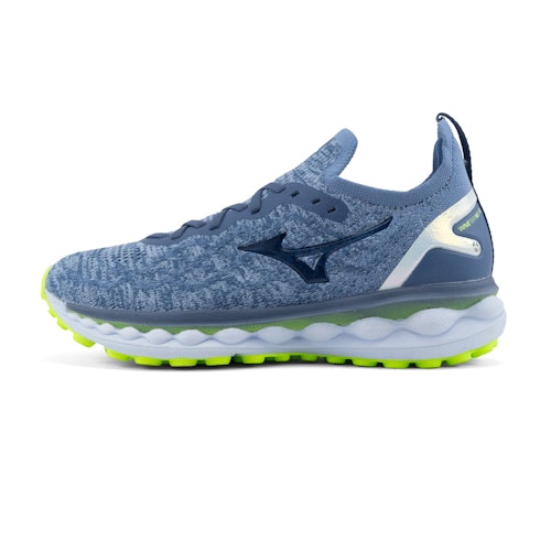 The Mizuno Wave Sky Neo 2 for women are neutral running shoes that provide a lot of cushioning. Mizuno found the perfect combination of comfort, cushioning and high energy return in the Wave Sky Neo 2. Thanks to this the shoes are excellent for all-round use. The upper of these second version has been updated and now is made of Waveknit material. This 3D woven material ensures a perfect snug fit. The external heelcap provides a lot of stability and the pull-tab on the back makes it easy to put on and take off the shoes. With two layers of Mizuno ENERZY CORE in the midsole, the Sky Neo 2 provides a lot of cushioning and energy return. The material is 29% lighter and 56% more springy than the midsole of the original Wave Rider Sky Neo. The sock-like construction in combination with the U4icX material, the Mizuno ENERXY and the Mizuno Foam Wave ensure a lot of stability. The outsole is made of blown carbon rubber. Thanks to this the shoes are extra durable and provide excellent grip.
