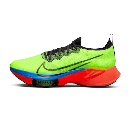 The Nike Air Zoom Tempo Next% FK for men are neutral all-round running shoes. The Tempo Next% FK is built like a competition shoe but meant for your daily run. The running shoes are both durable and very lightweight for a quick daily workout. The upper consists of Flyknit (abbreviation: FK) for a well-closed feeling and high breathability. The Flyknit material in the Tempo is slightly see-through for a fast look. The upper is highly durable and designed to withstand wear and tear. The asymmetrical lacing system offers a personalized fit and a great lockdown feel. The loop on the heel makes it easier to put on and take off the shoes.