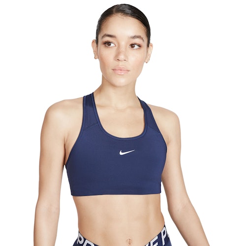 The Swoosh Medium-Support Sports Bra is a comfortable sports bra. The bra offers medium support and is suitable for medium-impact sports activities such as; running, spinning and fitness. The Nike Dri-FIT technology ensures good breathability, faster evaporation and a comfortable fit.