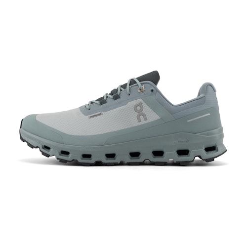 The On Cloudvista Waterproof is a reliable all-rounder for all your trail adventures. The shoe has a versatile character, making this model suitable for every trail distance and type of training. Don't let any obstacle stop you with this reliable trail shoe! MidsoleThe midsole of the Cloudvista consists of the reactive Helion™ SuperFoam cushioning material with the CloudTec® technology. This combination is made for explosive movements. It provides good cushioning without reducing the energetic feeling. CloudTec® are the 'clouds' that absorb both horizontal and vertical shocks and therefore make your landing extra soft. Once your feet hit the ground, the Clouds stay firmly in place so you can continue with a powerful push-off. Furthermore, the midsole has a custom-made Speedboard® plate to make every step energetic. UpperThe Cloudvista has an upper specifically designed for trail runners. The upper consists of recycled polyester mesh and has a waterproof membrane to keep your feet dry during rain showers. Ripstop is the weaving technique used in manufacturing the shoe to ensure that the material of the upper is strong and tear-resistant. Reflective details have been added to make you more visible in the dark, so don't let the darkness stop you from running. There is also a perforated microfiber tongue to keep your feet cool and finally the upper has a transparent mudguard to provide extra protection and dry feet. OutsoleTo ensure mega-grip, this model has the Missiongrip™ outsole to tackle any trail without a doubt. The Missiongrip™ outsole provides great grip with square studs in the heel and forefoot, as well as multi-angled studs in the shank and toe. The Missiongrip™ rubber has a 'sticky' property, which makes it stick to the surface you walk on. Not literally, but it does give you the feeling of a lot of grip and traction. Put on the On Cloudvista Waterproof and you are ready for your trail run!