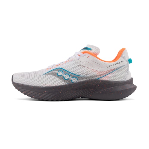 Article number: S20823-85 Article group: Competition Running Shoes Collections: Saucony Kinvara Colour: White Gender: Men Brand: Saucony Shoe type: Neutral Cushioning: Moderate Forefoot height: 27 mm Heel height: 31 mm Offset: 4 mm Responsiveness: Moderate Support: Minimum Width: Normal